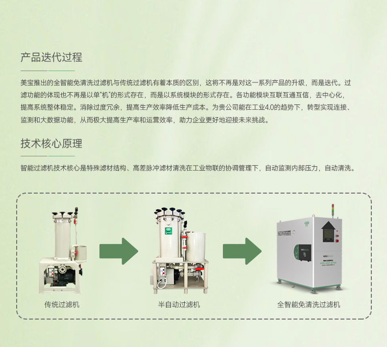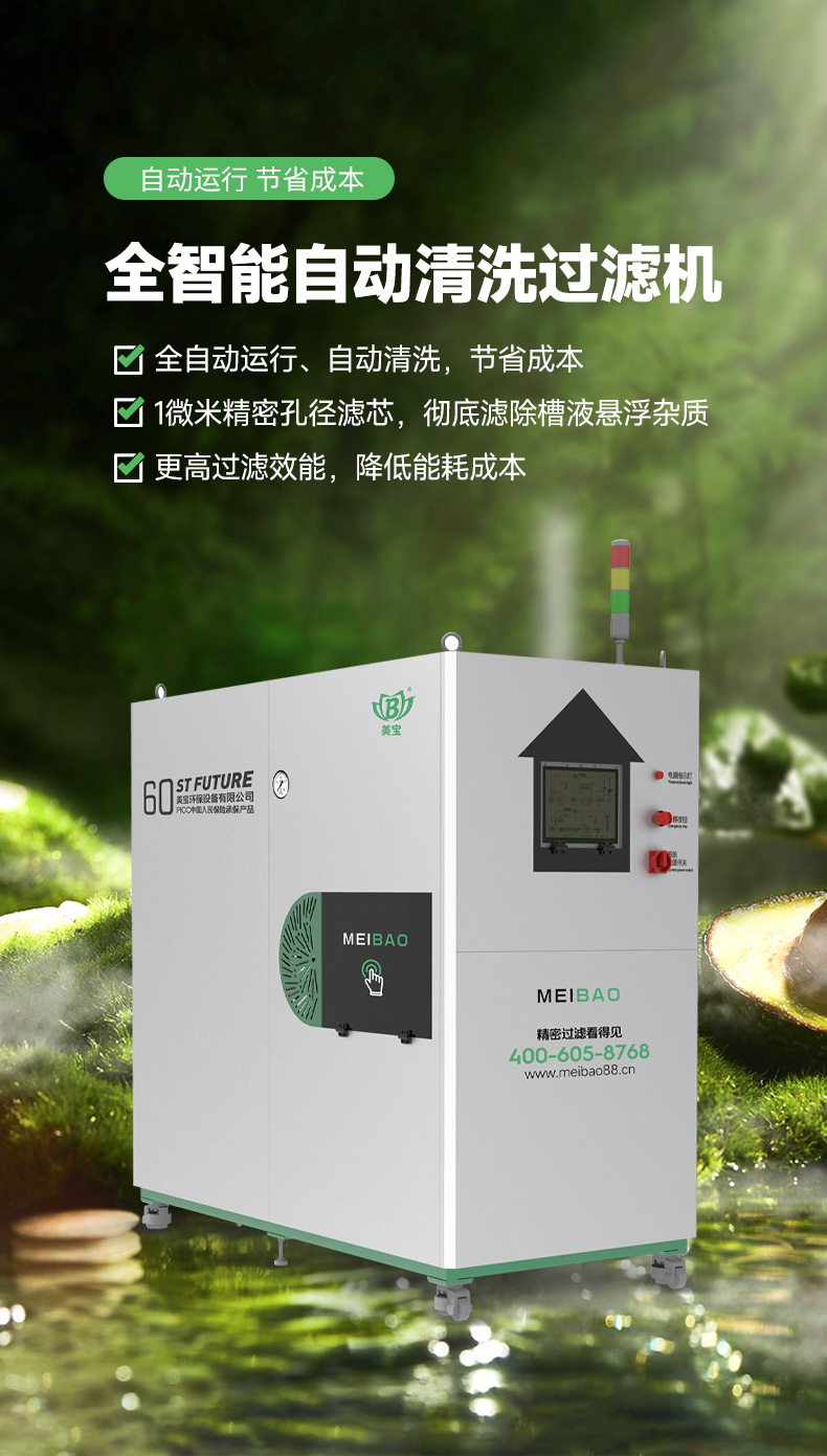 MEIBAO恒凈系列全智能自動(dòng)清洗過(guò)濾機(jī)是我司根據(jù)企業(yè)生產(chǎn)過(guò)程中過(guò)濾機(jī)濾材清洗頻繁、費(fèi)水、費(fèi)人工、洗的不干凈、現(xiàn)場(chǎng)環(huán)境難維護(hù)等一系列問(wèn)題而自主研發(fā)的一款智能過(guò)濾機(jī)。 該設(shè)備有效減少浪費(fèi),大大降低企業(yè)制造成本。為貴司在工業(yè)4.0的趨勢(shì)下,轉(zhuǎn)型實(shí)現(xiàn)連接、監(jiān)測(cè)和大數(shù)據(jù)功能,從而提高生產(chǎn)效率和運(yùn)營(yíng)效率,更好的迎接未來(lái)挑戰(zhàn)